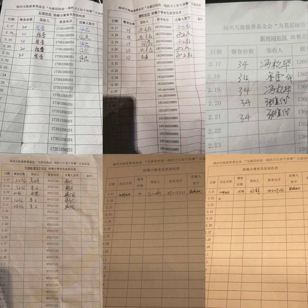 扬州天海慈善基金会为卜桥社区赠餐25份,为石塔社区赠餐20份、新河湾社区赠餐34份,为锦旺社区赠餐28份,为安平社区赠餐28份,为石桥社区赠餐24份。共赠餐159份,共支出费用4940元