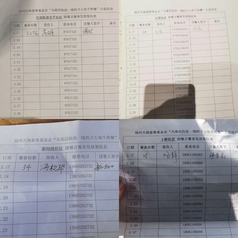 特别说明:为扬州市市区内在防疫一线的300名社区工作人员提供为期20天的工作午餐。由于疫情期间物价较高,我们将根据具体情况进行资源调配。