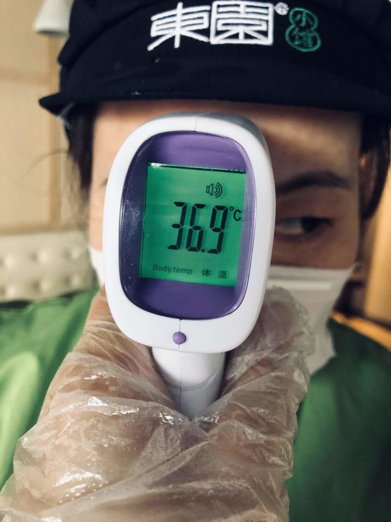 为了保证食品的安全可靠,东园集团工作人员对店里进行了全面的杀菌消毒工作,为接触食品的每一位员工进行体征测试。